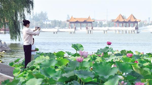 6月15日,在淮陽(yáng)龍湖國(guó)家濕地公園,一朵朵盛開的荷花嬌艷欲滴,這是今夏龍湖首批綻放的荷花。