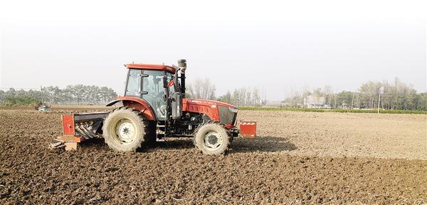 11月9日,在淮陽區(qū)高標(biāo)準(zhǔn)農(nóng)田示范區(qū),一臺東方紅拖拉機牽引著復(fù)式播種機在地里穿梭。