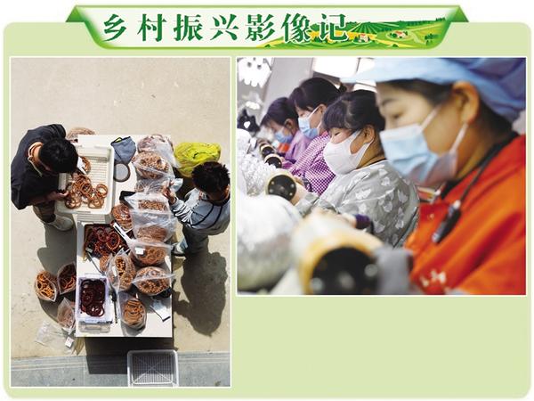 淮陽(yáng)區(qū)葛店鄉(xiāng)回龍集村民依托傳統(tǒng)核桃雕刻技藝,創(chuàng)新打造“工廠+數(shù)字電商”融合發(fā)展模式,構(gòu)建起“原料加工—?jiǎng)?chuàng)意設(shè)計(jì)—雕刻生產(chǎn)—電商營(yíng)銷(xiāo)”全鏈條文玩產(chǎn)業(yè)體系,成為鄉(xiāng)村振興背景下電商賦能的典型案例。圖為4月1日村民在車(chē)間加工文玩核桃(上)及通過(guò)直播平臺(tái)銷(xiāo)售產(chǎn)品(左)的場(chǎng)景。