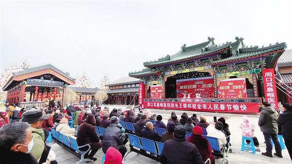 2月5日,中心城區(qū)關(guān)帝廟文化廣場(chǎng)鑼鼓喧天、熱鬧非凡,由川匯區(qū)群眾文化藝術(shù)服務(wù)中心與周口耳鼻喉醫(yī)院聯(lián)合舉辦的“金蛇狂舞賀新春”2025春節(jié)文藝匯演在此隆重上演。戲曲名家獻(xiàn)唱經(jīng)典選段,歌舞戲曲輪番登場(chǎng),吸引了眾多游客駐足觀賞。