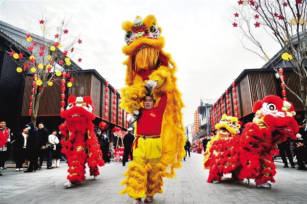 1月22日,孩子和“獅子”親密接觸,既開心又緊張。當(dāng)日,隨著第二屆“三川十館·春會”開幕,處處洋溢著歡快的新年氛圍。
