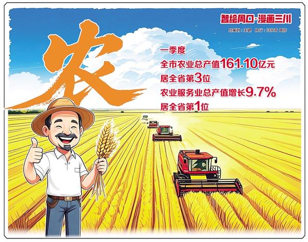 今年以來,我市農(nóng)業(yè)發(fā)展穩(wěn)中有進,一季度,全市農(nóng)業(yè)總產(chǎn)值161.10億元,同比增長3.3%,高于全省0.6個百分點,居全省第3位;第一產(chǎn)業(yè)用電量2.3億千瓦時,同比增長24.87%;農(nóng)業(yè)服務(wù)業(yè)總產(chǎn)值增長9.7%,居全省第一位。