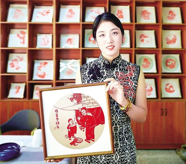 非遺剪紙代表性傳承人劉秀華展示剪紙作品。母親節(jié)前夕,劉秀華創(chuàng)作了一組以“母愛”為主題的剪紙作品,祝福天下母親節(jié)日快樂、健康長壽。