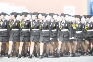 ?、?月9日,在俄羅斯首都莫斯科紅場,蘇沃洛夫少年軍校方陣行進(jìn)在閱兵式上。