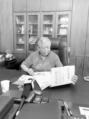 張柱堂向記者展示他做的《周口日?qǐng)?bào)》剪貼本。
