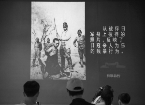 日軍虐待和殘殺戰(zhàn)俘的罪行,也展示在主題展覽中。有一組照片來(lái)自美國(guó)《生活》雜志,照片顯示日軍軍官先用劍刺殺一名中國(guó)戰(zhàn)俘,隨后,日軍士兵用刺刀繼續(xù)進(jìn)行“刺殺練習(xí)”,其殘忍和野蠻令人發(fā)指。