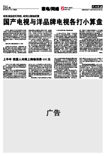 上半年 我國人均網(wǎng)上購物消費(fèi)650元